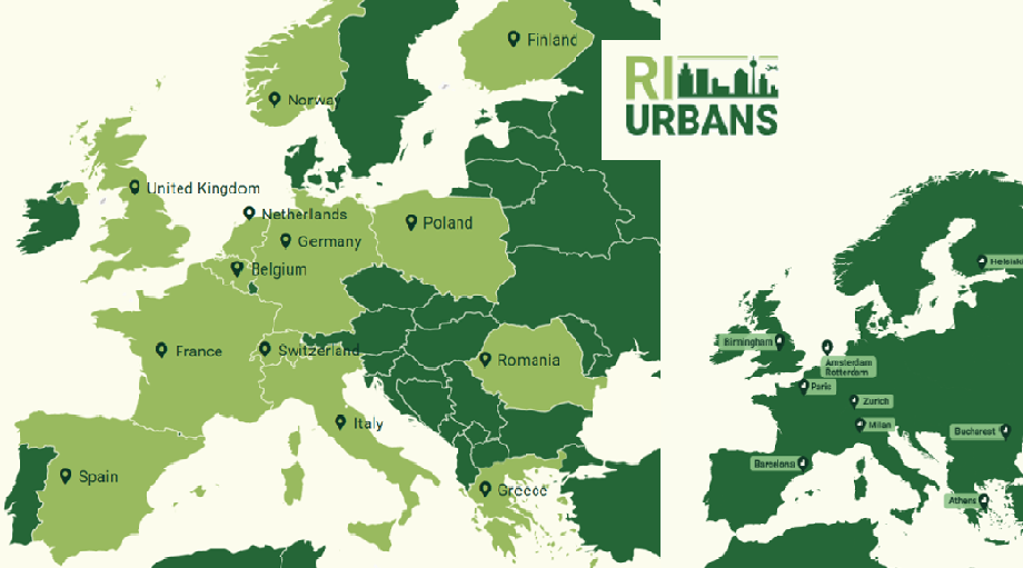 Το έργο RI-URBANS έχει ως στόχο να δείξει πώς τα Εργαλεία Εξυπηρέτησης (STs) από ατμοσφαιρικές υποδομές έρευνας (RIs) μπορούν να προσαρμοστούν και να βελτιωθούν για την καλύτερη αντιμετώπιση των προκλήσεων και των κοινωνικών αναγκών σχετικά με την ποιότητα του αέρα (AQ) σε ευρωπαϊκές πόλεις και βιομηχανικά hotspot. Στο RI-URBANS συμμετέχουν 27 εταίροι και εφαρμόζονται 5 πιλοτικές μελέτες σε 9 επιλεγμένες ευρωπαϊκές πόλεις (Αθήνα, Βαρκελώνη, Birmingham, Βουκουρέστι, Ελσίνκι, Μιλάνο-Μπολόνια, Παρίσι, Ρότερνταμ-Άμστερνταμ και Ζυρίχη) για δοκιμή και επίδειξη υπηρεσιών. Αυτές οι επιλεγμένες ευρωπαϊκές πόλεις αντιπροσωπεύουν διαφορετικές συνθήκες ποιότητα αέρα.