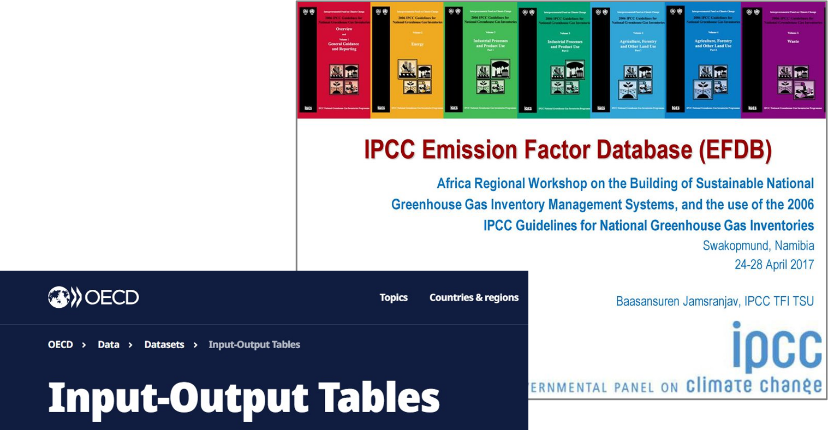 Αξιόπιστα μεθοδολογικά εργαλεία (π.χ. βάση δεδομένων πινάκων εισροών – εκροών ΟΟΣΑ) και διεθνώς αναγνωρισμένες βάσεις δεδομένων (π.χ. IPCC) για την εκτίμηση των οικονομικών, κοινωνικών και περιβαλλοντικών επιπτώσεων από την εφαρμογή ενεργειακών και περιβαλλοντικών πολιτικών