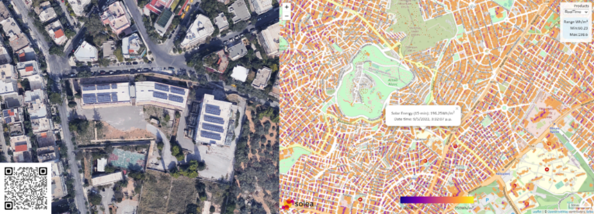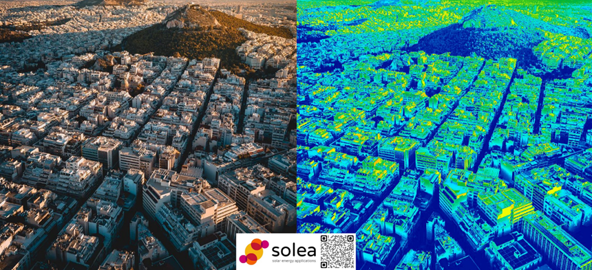 Απεικόνιση του δυναμικού ηλιακής ενέργειας που δύναται να εκμεταλλευτεί το εκάστοτε αστικό οικοδομικό τετράγωνο, με τη χρήση φωτοβολταϊκών συστημάτων εγκατεστημένα σε οροφές κτιρίων. Πρόκειται για μια επιχειρησιακή πλατφόρμα πληροφοριών που βασίζεται στην αξιοποίηση διεπιστημονικών δεδομένων και λειτουργεί τόσο κλιματολογικά, όσο και σε πραγματικό χρόνο. Τελικός στόχος είναι η διευκόλυνση του αστικού σχεδιασμού, η υποστήριξη των διαχειριστών διανομής της παραγόμενης ενέργειας και η αποτελεσματική ενσωμάτωση αυτής στα ηλεκτρικά έξυπνα δίκτυα. Περισσότερες πληροφορίες: http://solea.gr/athens-solar-cadastre/