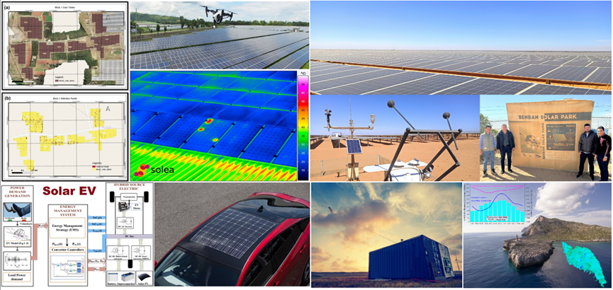 Εκτίμηση και πειραματική μέτρηση απόδοσης φωτοβολταϊκών πάνελ, βελτιστοποίηση λειτουργίας ηλιακών πάρκων μεγάλης κλίμακας, διείσδυση διεσπαρμένων φωτοβολταϊκών στις πόλεις σε επίπεδο οροφών κτηρίων, ανάπτυξη και εφαρμογή αερομεταφερόμενων συστημάτων παραγωγής αιολικής ενέργειας, ηλιακά ηλεκτρικά αυτοκίνητα και μη επανδρωμένα οχήματα επιθεώρησης και συντήρησης φωτοβολταϊκών συστημάτων.